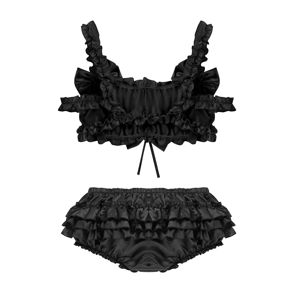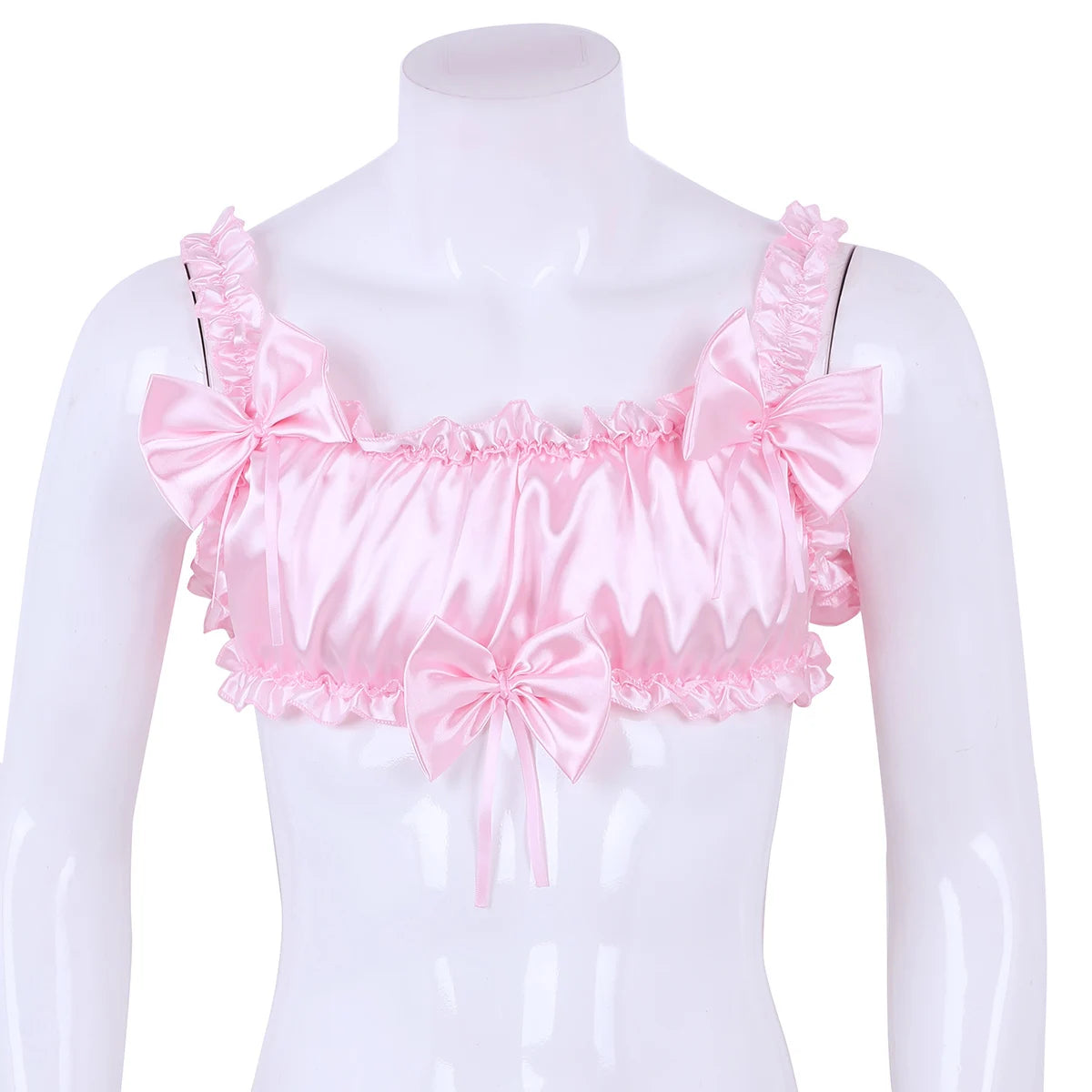 Feminine Satin Lingerie Set with Delicate Bow Detail for Femboys